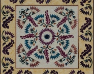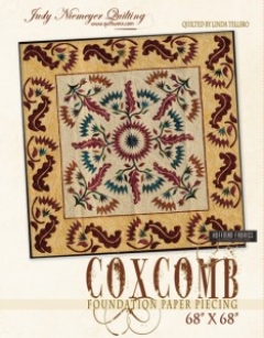Judy and Brad Niemeyer designed the Coxcomb flower into a pattern for foundation paper piecing. A collection of fabrics designed by Hoffman Fabrics were used to make the quilt shown on the covers.