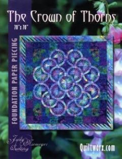 Paper piecing, curved piecing, strip piecing, and traditional piecing techniques are used when constructing The Crown of Thorns.