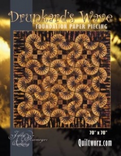 Bradley and Judy Niemeyer designed the foundation pieces and layout for the Drunkard’s Wave. A collection of hand-dyed batiks designed by Hoffman Fabrics were used to create the setting for the blocks in this quilt. A sewing technique called foundation paper piecing is used when sewing the pieces onto the foundation units. Curved piecing and traditional piecing skills are required to join the units after the foundation piecing is completed.