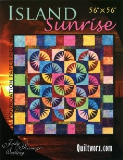Bradley and Judy Niemeyer designed the foundation pieces and layout for Island Sunrise. A collection of fabrics designed by Island Batik were used make the quilts shown on the cover. A sewing technique called foundation paper piecing is used when sewing the pieces onto the foundation units. Curved piecing and traditional piecing are required to join the units after the foundation piecing is completed.