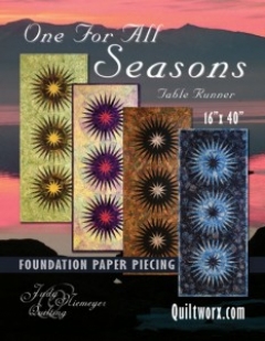 Bradley and Judy Niemeyer designed the layout and foundation pieces for the One for All Seasons Table Runners from a collection of light, medium, and dark fabrics. A sewing technique called foundation paper piecing is used when sewing the pieces onto the foundation units. Curved piecing and traditional piecing skills are required to join the units after the foundation piecing is completed.