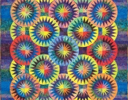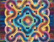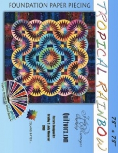 Tropical Rainbow, is an exciting new twist to an old favorite, the New York Beauty arc. Floating spikes, curved piecing, traditional piecing, and Template Layout Sheets are all design elements used to create this quilt for foundation paper piecing. A collection of fabric designed by Island Batik were used to make the samples on the box cover. The fabrics that were selected to make our quilts are typically the latest lines of fabrics that are supplied by a variety of fabric companies. Fabric companies design new fabric lines on a cycle of approximately every six months and at that time, they discontinue many of the previous lines. As a result, upon publication of our patterns, the same fabrics we use in our quilts on the cover most likely will not be available, unless a shop purchased the fabrics prior to publication, specifically to make fabric kits available for our quilts. However, choosing your own fabrics to make one of our quilts can be very simple. For example, the quilts on the cover were made using fifteen (15) bright fabrics and fifteen (15) dark fabrics.