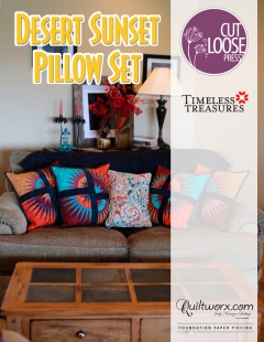 The Desert Sunset Pillow Set pattern is a Cut Loose Press pattern, which is different than a traditional Quiltworx pattern in that it utilizes various tools and Charm Elements (for more information on Charm Elements, click HERE) to create fast, fun, projects and layouts aimed at the beginner or a customer that simply wants to try out a fast project to learn a new technique or how to use a new tool.