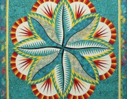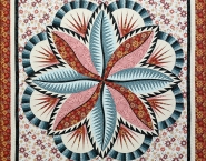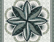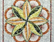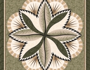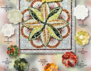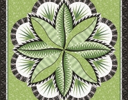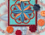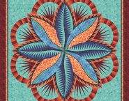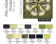 Judy and Brad Niemeyer designed the layout, instructions, and foundation papers for the Fire Island Hosta. A collection of fabrics designed by Judy and Judel Niemeyer with Timeless Treasures called Desert Rose were selected to make the sample shown on the cover. A sewing technique called foundation paper piecing is used to assemble the units required to make this quilt. Traditional piecing and curved piecing techniques are used to join the units after the foundation piecing is completed. The cover quilt was quilted using a digitized quilting design from Quiltworx.com. The quilt was pieced by Judy Niemeyer and Quiltworx Staff. The colorway was designed by Judel Niemeyer.