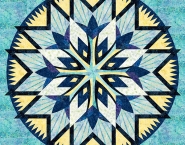 The Kaleidoscope Quilt was designed by Judy and Brad Niemeyer to show the possibilities of mixing and matching our 22″ diamonds to create an exploded star quilt layout. The project requires (24) diamond blocks. We chose the Basket Star and Woven star for this design. We are also introducing a paper pieced background block in this layout. The quilt requires paper piecing and traditional piecing skills, including curved piecing, to complete.