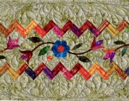 The foundation papers for the Landscapes Chevron Table Runner patterns were designed by Bradley and Judy Niemeyer. The layout and fabric selection was designed by Judel Niemeyer Buls, and the fabrics and applique used for the table runners was designed by Edyta Sitar, with Laundry Basket Quilts. Quiltworx.com would like to thank Moda Fabrics and Laundry Basket Quilts for donating the fabrics and appilque to complete the table runners on the coversheet!