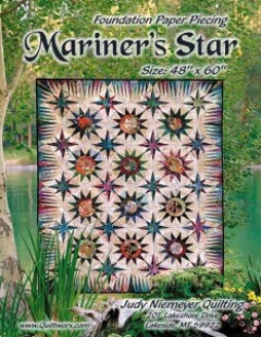 The Mariners Star is one of my favorite patterns. The creativity, determination and two years of playing by Sheryl Mycroft were what finally brought this pattern to life. She rearranged the Briar Patch blocks into a circle to create a Mariner’s Compass. Sheryl wanted to add to the compass and decided on a star so my son Bradley designed a star for the background behind the compass blocks. We decided a pieced border might help tie the quilt together so Bradley designed a spikey border to fit between the stars around the edge of the quilt. The quilt was designed for foundation paper piecing. The foundation units are very simple to master and fit together with simplicity. This pattern does require some curved piecing for the melons.