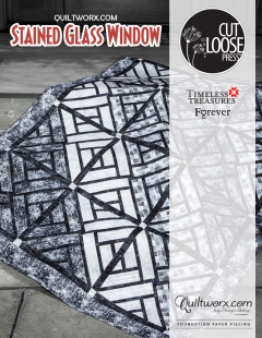 The Stained Glass Window pattern is a Cut Loose Press pattern, which is different than a traditional Quiltworx pattern in that it utilizes various tools and Charm Elements (for more information on Charm Elements, click HERE) to create fast, fun, projects and layouts aimed at the beginner or a customer that simply wants to try out a fast project to learn a new technique or how to use a new tool.