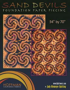 Bradley and Judy Niemeyer designed the layout and foundation pieces for Sand Devils. A collection of fabrics designed by Hoffman Fabric of California were used to make both samples shown on the cover page. A sewing technique called foundation paper piecing is used when sewing the pieces onto the foundation units. Curved piecing and traditional piecing skills are required to join the units after the foundation piecing is completed.