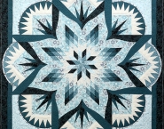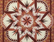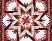 Sandstone Spires is constructed using 2 distinct groups, comprised of (8) center diamonds in Group A, and border blocks that result in an 68″ square quilt as Group B. The pattern was designed by Judel and Judy Niemeyer in Quiltster, using blocks designed by Judy and Bradley Niemeyer. The blocks and pattern require paper piecing and traditional piecing skills and are available through Quiltworx.com. The blocks are also interchangeable with other similarly sized blocks as part of the Meadow Star Wall Hanging Mixer. This means there are other blocks the same size as those in this quilt that have been designed by Quiltworx.com and use paper piecing techniques as well. If you are interested in learning how to mix and match these blocks and create your own design, check out Quiltster.com.