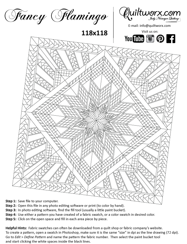 This pattern is available in Quiltster! This means you can color the quilt with your favorite fabric collections in Quiltster before you make it. Quiltster will even provide you with yardage! You can also purchase kits designed by Quiltster Sellers right in the application! Click on the Project button to access the pattern templates and begin coloring with fabrics uploaded from your stash and/or fabric collections from across the industry! A Quiltster account is required to use the coloring tool. If you do not have a Quiltster account already, you will need to subscribe and log in before these links will work. Subscriptions can be obtained by going to http://www.quiltster.com, click on Subscribe! If you’d like to purchase a kit from a Quiltster Seller, click the Marketplace button! A subscription is not needed in Quiltster to purchase a kit through the Marketplace. |