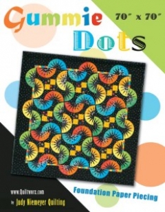 Bradley and Judy Niemeyer designed the foundation pieces and layout for Gummie Dots. A collection of bright children fabrics were used to create the setting for the blocks in this quilt. A sewing technique called foundation paper piecing is used when sewing the pieces onto the foundation units. Curved piecing and traditional piecing are required to join the units after the foundation piecing is completed.