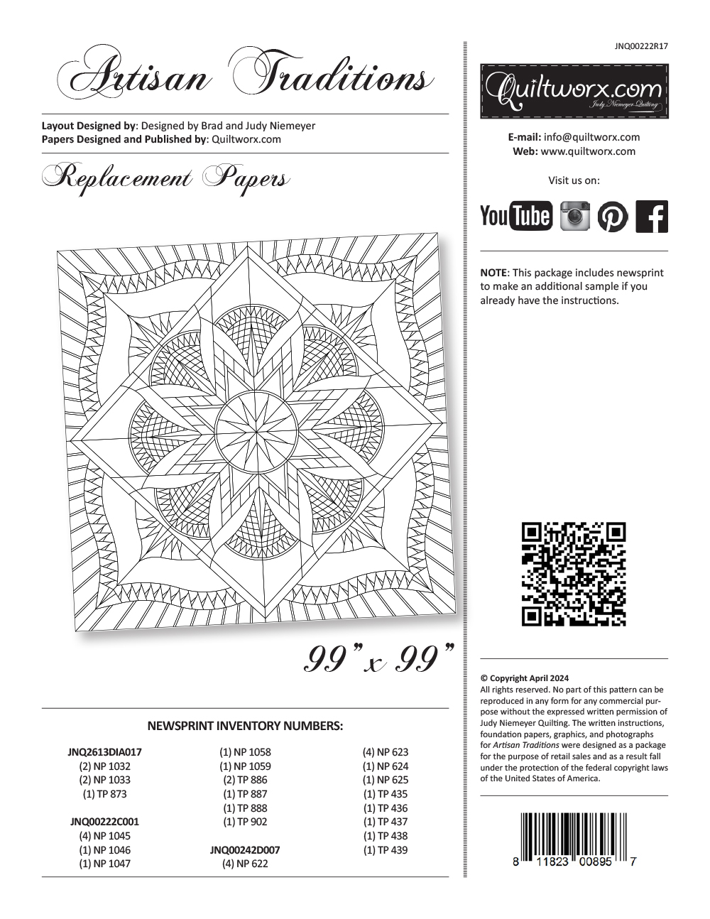 Pattern Includes: Instructions, Cover Sheet, Yardage Information, Expansion Information, Foundation Papers