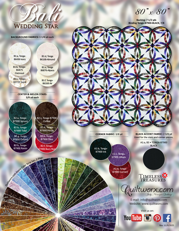 Please note: The following items, listed under the Buy Now button, are sold separately and can enhance your quilting experience with Bali Wedding Star: