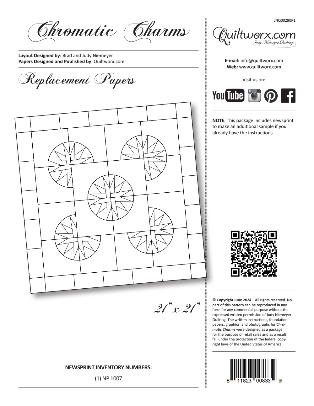 Need a little guidance? Check out the Chromatic Charms Quick Start video on YouTube, where Judy herself walks you through every step—making it easier than ever to create something beautiful. And if you fall in love with this design (and we hope you will), Replacement Papers and handy notions are available to make your quilting journey smooth and enjoyable.