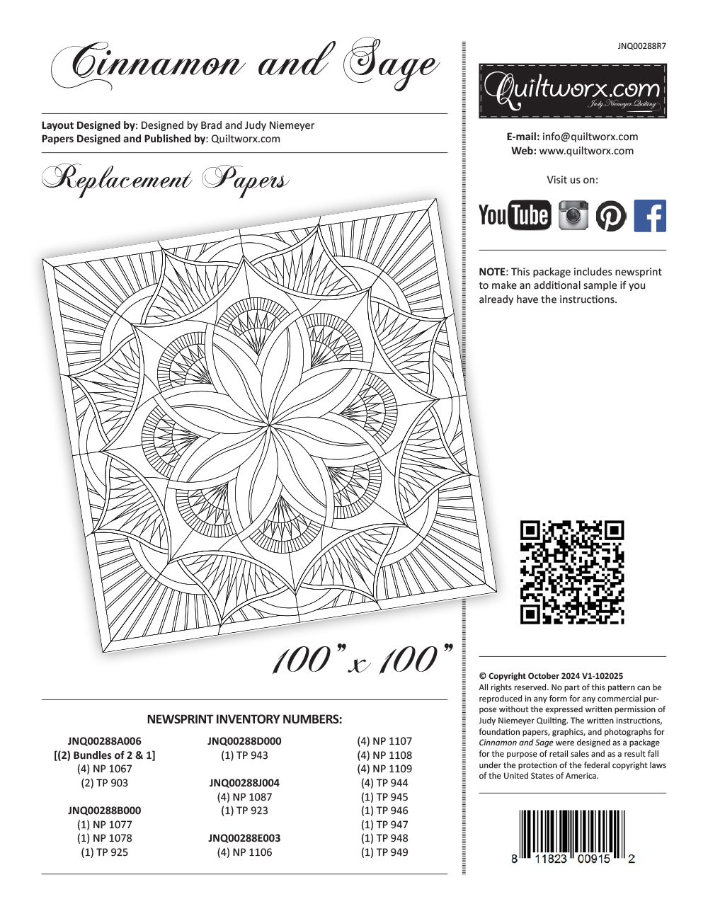 Pattern Includes: Instructions, Cover Sheet, Yardage Information, Foundation Papers, Expansion Information