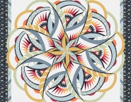 The Coral Reef includes many of Judy’s techniques for paper piecing, including cutting, stacking, chain piecing, curved piecing, strip piecing, smart corners, appliqué, the use of Transition and Registration Point (TRP) Lines, and curved paper piecing.