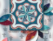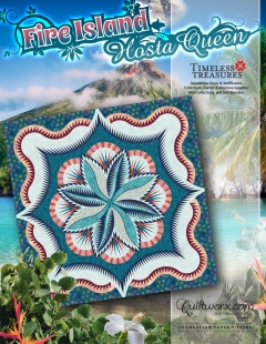 Quiltworx.com designed the instructions, and foundation papers for the Fire Island Hosta Queen. A sewing technique called foundation paper piecing is used to assemble the units required to make this quilt. Traditional piecing and curved piecing techniques are used to join the units after the foundation piecing is completed. The color layout for the quilt on the cover was designed in Quiltster, a subscription-based fabric and block auditioning application that includes Quiltworx patterns (and others!).