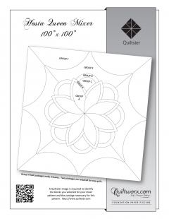 The Hosta Queen Quilt Mixer layout includes 6 distinct groups to create an 100” x 100” quilt. The components include a Leaf Center, a Leaf Border, a Clamshell Background, a Clamshell Border, a Swag Border, and an Outside Border. Quiltworx.com has designed a series of paper-pieced blocks that can be mixed and matched in each of these areas to create a quilt that is unique to you. When you click on the buy now button, each of the paper-pieced blocks will be listed separately for you to purchase only the ones you want to use. Please note that you will need to purchase the Hosta Wall Quilt Introduction booklet as well! However, if you are making a second mixer and already have the introduction, you will not need to purchase it again.