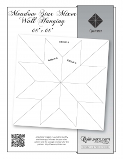 The Meadow Star Mixer Wall Hanging is constructed using 2 distinct groups, comprised of (8) Center Diamonds in a Group A, and border blocks that result in an 68” Square quilt as Group B. Quiltster allows you to mix and match the diamonds if you want to create a more dynamic quilt. However, note when you get your mixer booklets that each diamond booklet includes enough papers to make (8) pieces. If you use Quiltster to create a custom layout that uses more than (1) type of diamond, you will have some left over units in each package that could be used for another project if desired.