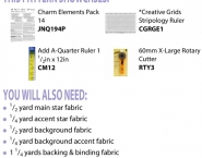 Click on the Buy Now button to the right to find various packaged Cut Loose Press Options, including the Cut Loose Press pattern only, a package that includes the Cut Loose Press pattern and the associated Charm Elements, or packages that include various other products (such as rulers or applique, etc.) necessary to complete the project, which you may not have!