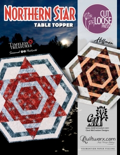 The Northern Star Table Topper pattern is a Cut Loose Press pattern, which is different than a traditional Quiltworx pattern in that it utilizes various tools and Charm Elements (for more information on Charm Elements, click HERE) to create fast, fun, projects and layouts aimed at the beginner or a customer that simply wants to try out a fast project to learn a new technique or how to use a new tool.