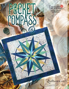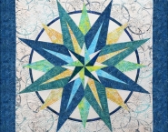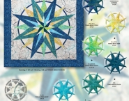 Pocket Compass is constructed using three sections: Group J is comprised of (8) center diamonds; Group G is a pieced border added to the center diamonds to make a 32″ square, and Group B is an outer border added to the quilt center. The quilt blocks were designed by Judy and Bradley Niemeyer. The layout and colorway was created by Judel Niemeyer using Quiltster.