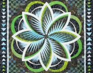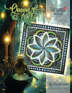 Begin your journey through a moonlit garden of enchantment with Queen of the Night, a striking 80″ x 80″ quilt pattern from Quiltworx’s acclaimed Hosta Mixer series. Featuring a bold colorway inspired by Disney’s Princess and the Frog, this design captures the mystery and magic of the bayou with dramatic blacks and whites, and glimmering bursts of teal and lush green. It’s a tribute to twilight blooms and cinematic romance.