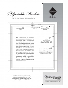 These borders fit various sizes of Quiltworx quilts, they are adjustable in two directions. Cutting off the bottom of the units across the length of each border gives you very slight adjustments, within a few inches and can also reduce yardage needed. Removing each of the solid sections gives you larger reductions in your border. Each Unit K2 is 16″ wide. So, you can remove these, to make a large jump in size reduction. Then, you can adjust with small steps again, by trimming length-wise. If you need to adjust the width to somewhere in between, we suggest measuring your quilt, and doing the math to shorten the (2) K2 center units accordingly. Take an equal amount off of each unit to have symmetrical border units on your quilt.
