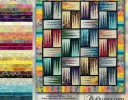 We would like to extend a special thanks to Timeless Treasures for providing us with the pre-packaged 2-1/2” strip sets referred to as Quiltworx Strip Sets, comprising of (48) 2-1/2” x 42” strips pre-sorted into color groups with (6) groups of (8) ranging from light to dark. The strip collection used for the cover project was designed by Judel and Judy Niemeyer and is called Sunset. Any of our other (48) strip sets could be used for this project as well. The strip set was paired with a black sashing strip.