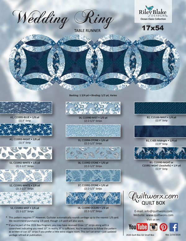 The beloved Wedding Ring aesthetic gets a fresh, approachable twist in the Wedding Ring Table Runner, first introduced as the 2026 Q1 project in the Quiltworx Box Program Small Box—and now available as a stand‑alone pattern for everyone to enjoy.